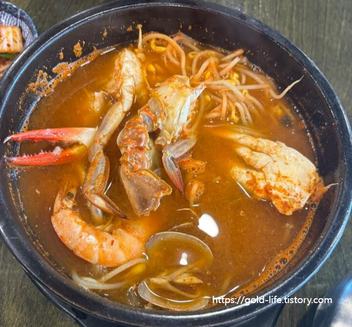 꽃게뿐만 아니라 새우, 바지락까지 들어있어서 정말 시원했습니다.