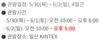 마지막날은 5시까지만 관람이 가능하니 참고하시고요.