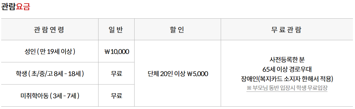 사전등록하지 않으신 분은 예외를 제외하고 관람요금이 10,000원이라고 하니 꼭 사전등록하시는 걸 추천드려요.