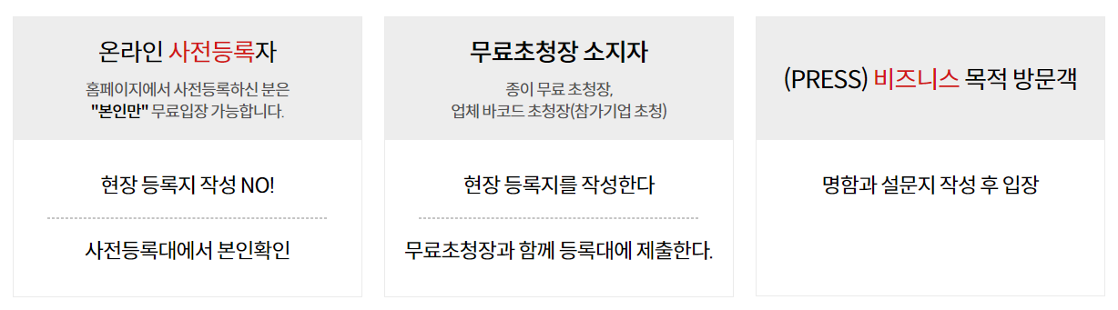 등록하시면 무료 초청장이 우편으로 발송된다고 하니 우편함 확인도 잊지 말고 확인하시길 바랄게요.